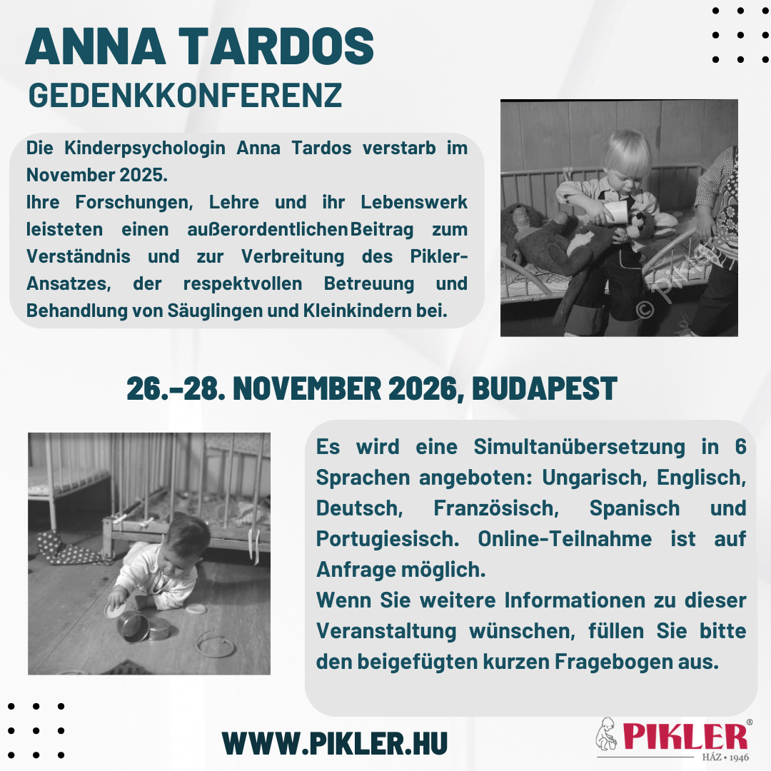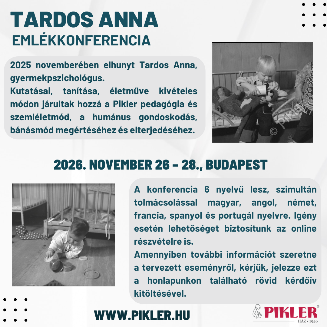 We are excited to announce that the Pikler House is organising a 3-day conference to honour Anna Tardos.
