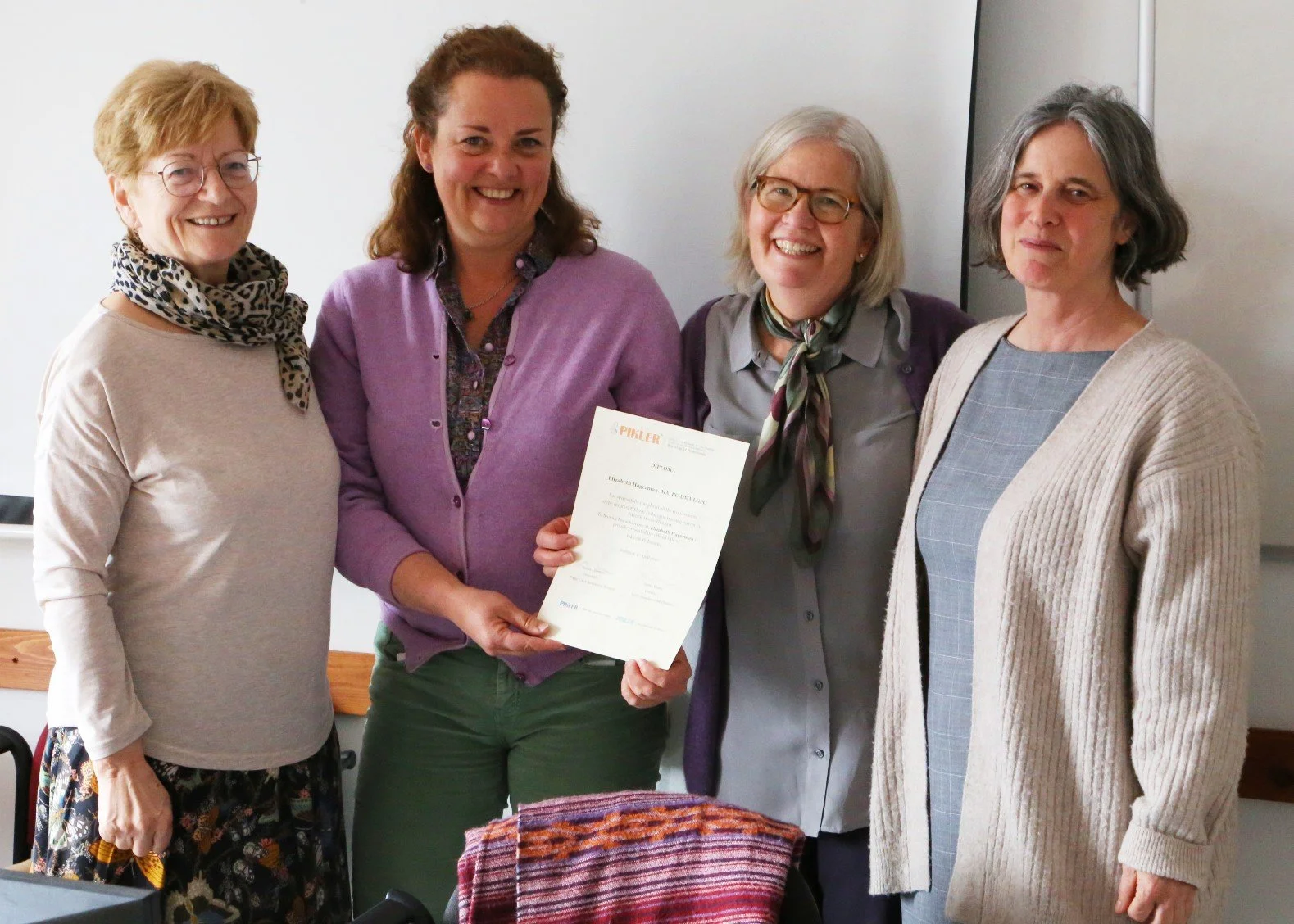 Dr Mária Majoros, Dr Eszter Mózes, Liz Hagerman, Zsuzsa Libertiny (from left to right) at the Pikler House in Budapest, April 2022